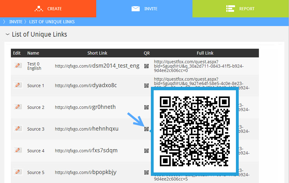 The feature can also be used in the INVITE Section where sometimes dozends of re-direct links are generated. Hope you will enjoy this feature of questfox.