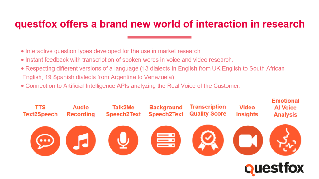 We are looking forward to your suggestions about the use of speech in research. Contact us under info@questfox.com