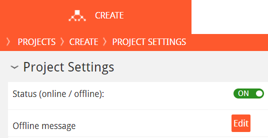 A project set to offline will always show your individual offline message. You can create this message under project settings – edit.