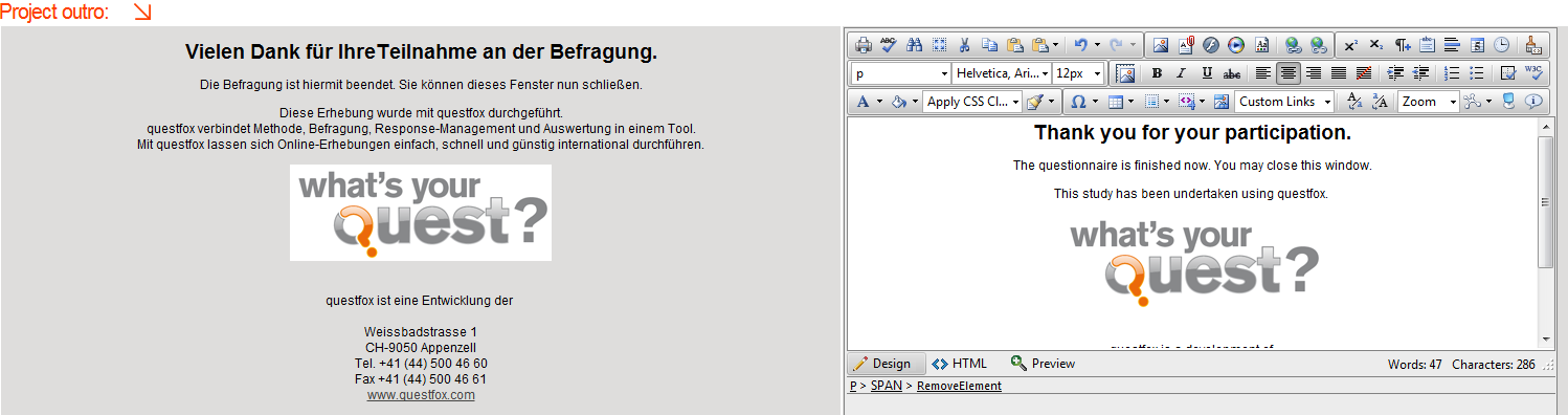 The idea is, that someone who is not familiar with questfox at all, can edit the final texts in a survey (including intro text, mail text, items, scale labels etc.)