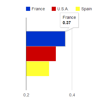 The following screenshot from an interactive chart shows you how it looks like. Colors are defined by the color of the attribute or alternative.
