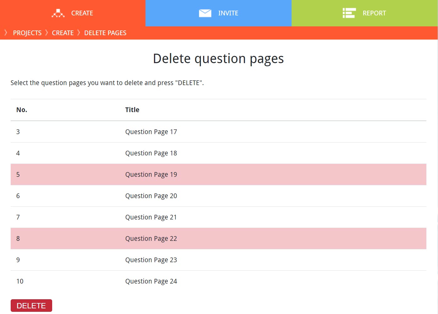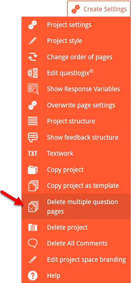 Users will be happy to have these new functions facilitating the way you can create projects together with the “copy function” and “copy project as template” functions it makes sense to quickly delete selected questions from a list of question pages.